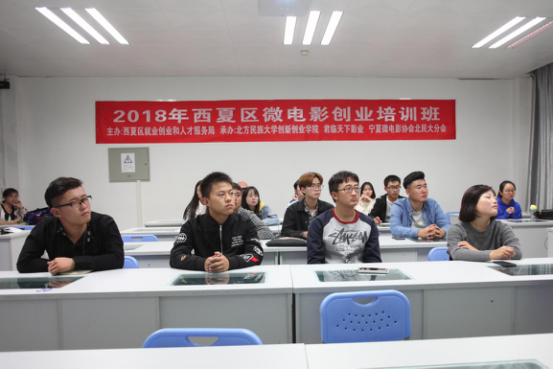 認(rèn)真貫徹落實(shí)黨的十九大精神,進(jìn)一步提升以創(chuàng)新創(chuàng)業(yè)帶動(dòng)更多就業(yè),擴(kuò)大就業(yè)和改善民生全力做好創(chuàng)業(yè)幫扶和服務(wù),促進(jìn)社會(huì)和諧穩(wěn)定,由西夏區(qū)就業(yè)創(chuàng)業(yè)和人才服務(wù)局主辦,北方民族大學(xué)創(chuàng)新創(chuàng)業(yè)學(xué)院、君臨天下影業(yè)、寧夏微電影協(xié)會(huì)北民大分會(huì)承辦的首屆2018年西夏區(qū)微電影創(chuàng)業(yè)培訓(xùn)”于昨天在北方民族大學(xué)創(chuàng)新創(chuàng)業(yè)學(xué)院正式開班。