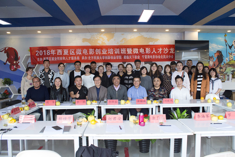 本次培訓(xùn)及沙龍旨在進一步提升以創(chuàng)新創(chuàng)業(yè)帶動更多就業(yè),擴大就業(yè)和改善民生,全力做好創(chuàng)業(yè)幫扶和服務(wù),由西夏區(qū)就業(yè)創(chuàng)業(yè)和人才服務(wù)局主辦,北方民族大學(xué)創(chuàng)新創(chuàng)業(yè)學(xué)院、君臨天下影業(yè)、寧夏微電影協(xié)會北民大分會共同承辦的。