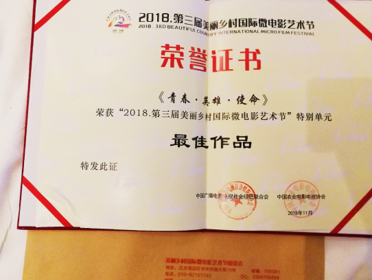 由中國(guó)人民解放軍寧夏軍區(qū)、寧夏回族自治區(qū)微電影協(xié)會(huì)、寧夏君臨天下影視傳媒有限公司報(bào)送的公益征兵影片《青春·英雄·使命》榮獲組委會(huì)最佳影片大獎(jiǎng),中國(guó)人民解放軍寧夏軍區(qū)征兵影片總導(dǎo)演魏軍及劇組代表參加了頒獎(jiǎng)典禮?!肚啻骸び⑿邸な姑窂牟邉澋脚臄z共計(jì)耗時(shí)30天,影片通過(guò)少年子俊、大學(xué)生小王、軍嫂雪梅、老兵爺爺?shù)男〖仪檎宫F(xiàn)了青春、英雄、使命的家國(guó)情。剛剛被中國(guó)人民解放軍寧夏軍區(qū)授予中國(guó)人民解放軍寧夏軍區(qū)公益征兵影片優(yōu)秀奉獻(xiàn)導(dǎo)演的魏軍表示:“崇尚榮譽(yù)、尊崇英雄、精忠報(bào)國(guó)是該片展現(xiàn)的主要思想,祖國(guó)的英雄和榮譽(yù)是值得我們尊崇和崇尚的,通過(guò)普通的人物奉獻(xiàn)詮釋了我們、他們和她們對(duì)祖國(guó)的奉獻(xiàn)及捍衛(wèi)?!睋?jù)悉《青春·英雄·使命》先后榮獲第六屆亞洲微電影藝術(shù)節(jié)金海棠獎(jiǎng)、第三屆美麗鄉(xiāng)村國(guó)際微電影藝術(shù)節(jié)最佳劇情獎(jiǎng)、最佳電影海報(bào)獎(jiǎng)以及組委會(huì)特別單元最佳影片獎(jiǎng)。